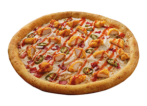 Grilled chicken, Chicken Sausage, chicken Pepperoni, Fresh Mushroom, Onion, Green Pepper & Black Olives with Ranch sauce