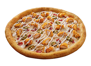 Grilled chicken, Chicken Sausage, chicken Pepperoni, Fresh Mushroom, Onion, Green Pepper & Black Olives with Ranch sauce